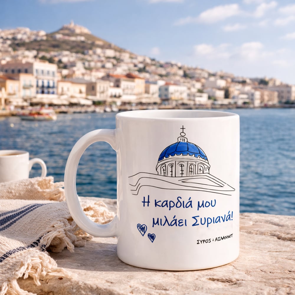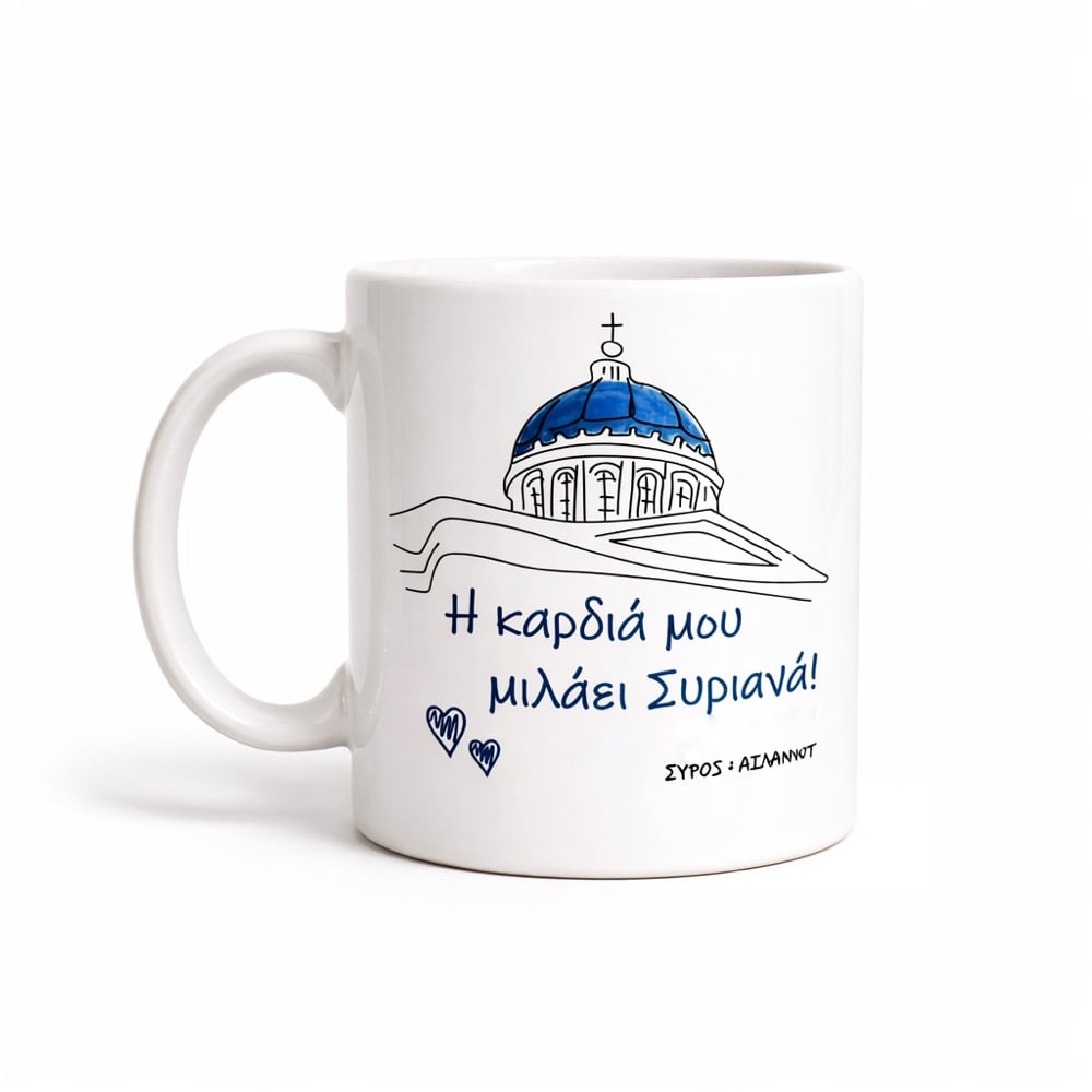 Πάρε ένα κομμάτι της Σύρου μαζί σου.Οι κούπες της συλλογής μας είναι διακοσμημένες με σχέδια εμπνευσμένα από τη Σύρο – τα σοκάκια, τα τοπία και τα χαρακτηριστικά στοιχεία του νησιού.