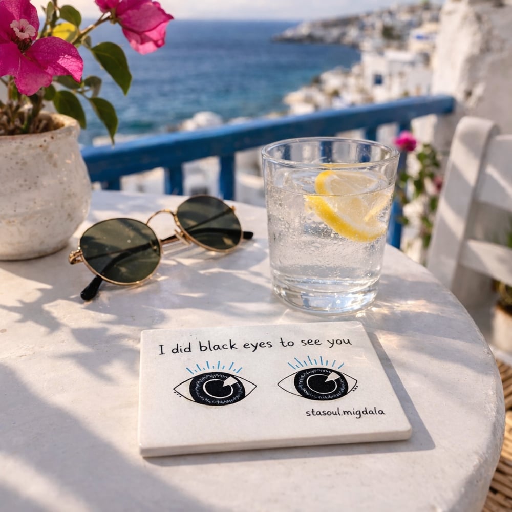 Ένα σουβέρ με χιούμορ.Βάλε το στο τραπέζι και περίμενε.